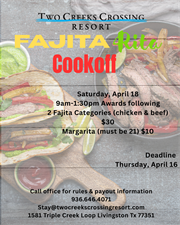 FAJITA/RITA COOK OFF AT TWO CREEKS CROSSING RESORT!