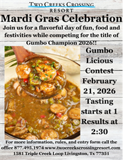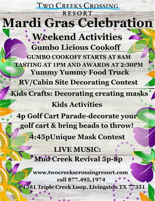 MARDI GRAS GUMBO COOK OFF AT TWO CREEKS CROSSING RESORT!
