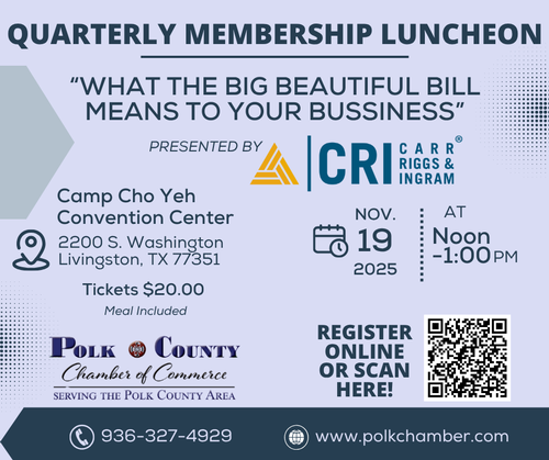 "What the Big, Beautiful Bill Means to your Business". The program will be from noon until 1 pm.. Please register online. Ticket includes lunch.